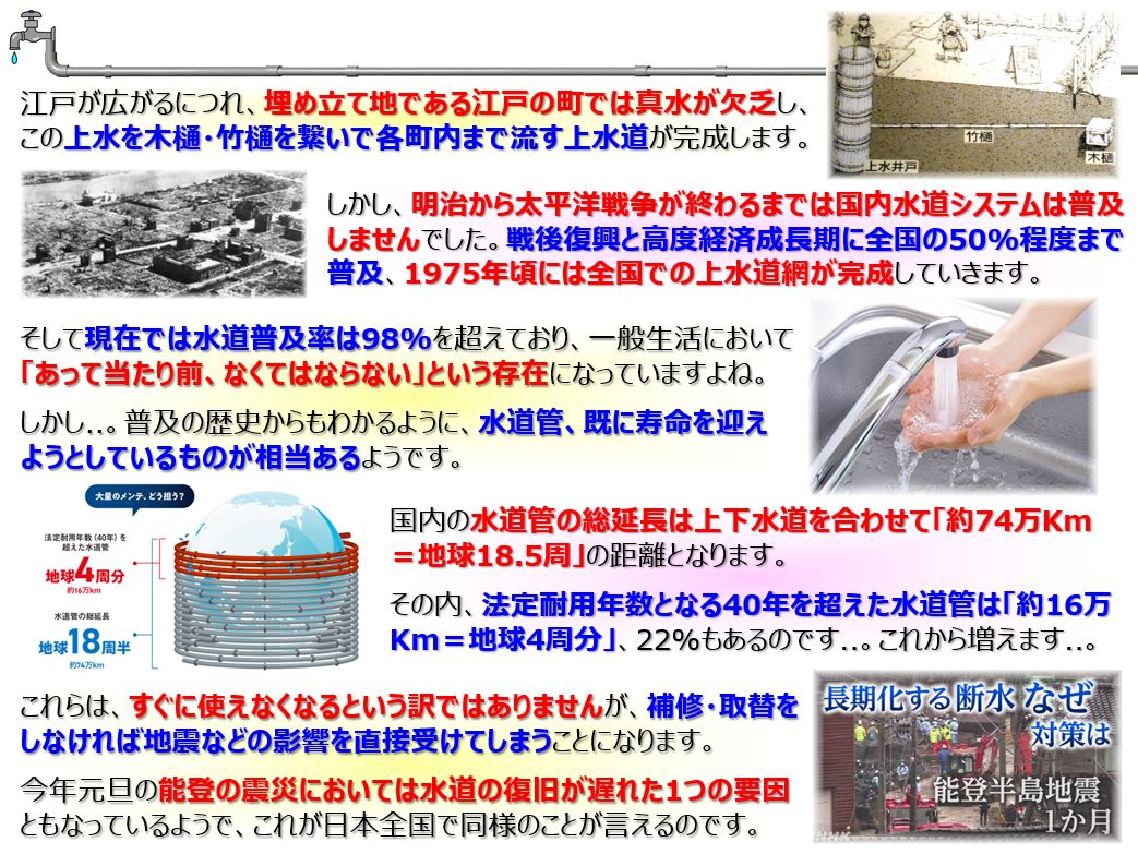 水道、それは現代人にとっては、なくてはならないインフラですよね。